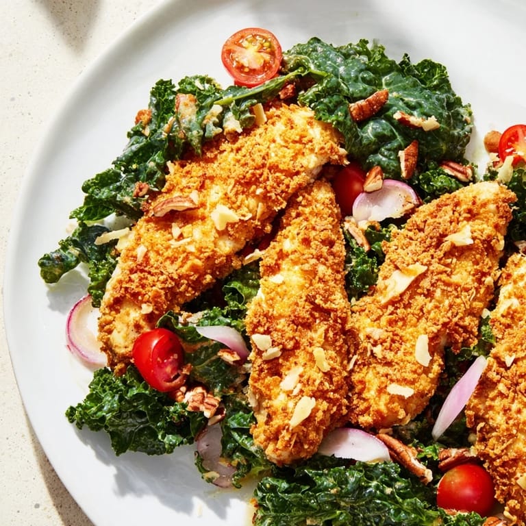 Save The sound of panko hitting hot oil still makes me smile. I was experimenting one afternoon, trying to figure out how to make salad feel like an actual meal without just dumping grilled chicken on top. I wanted crunch, I wanted flavor, and I wanted my partner to stop asking if we could order takeout instead. This crispy chicken kale salad was born out of that stubborn determination, and it worked so well that now it's requested at least twice a month.