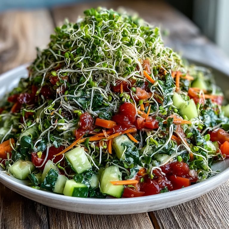 I made this for my sister when she was going through a strict elimination diet, frustrated and hungry, convinced salad was her only option. Watching her face light up when she realized how vibrant and satisfying it was—how the sprouts gave it real substance, how the dressing wasn't just oil and vinegar—that's when I understood this recipe was more than just healthy. It became the thing she asked for first when she could eat normally again, which told me everything.