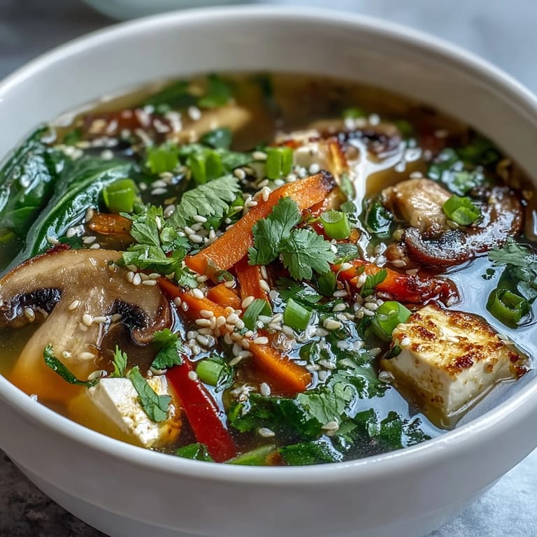Save My neighbor brought over a container of this soup on a rainy Tuesday, and I remember being struck by how something so simple could taste so complete. The broth was delicate but full, each vegetable distinct yet harmonious, and the tofu melted into it like it belonged there all along. I've made it dozens of times since, and it's become my go-to when I need something that feels both nourishing and effortless. There's something about the way the ginger and garlic wake up in that hot oil that signals comfort is coming.